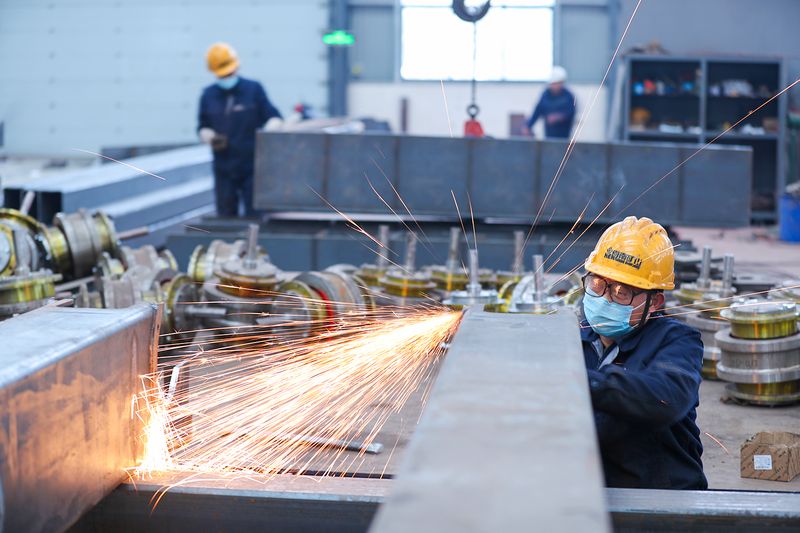 生產(chǎn)車間熱火朝天,焊花飛濺,機器轟鳴,工人們正開足馬力加緊生產(chǎn),確保訂單按時交付。
